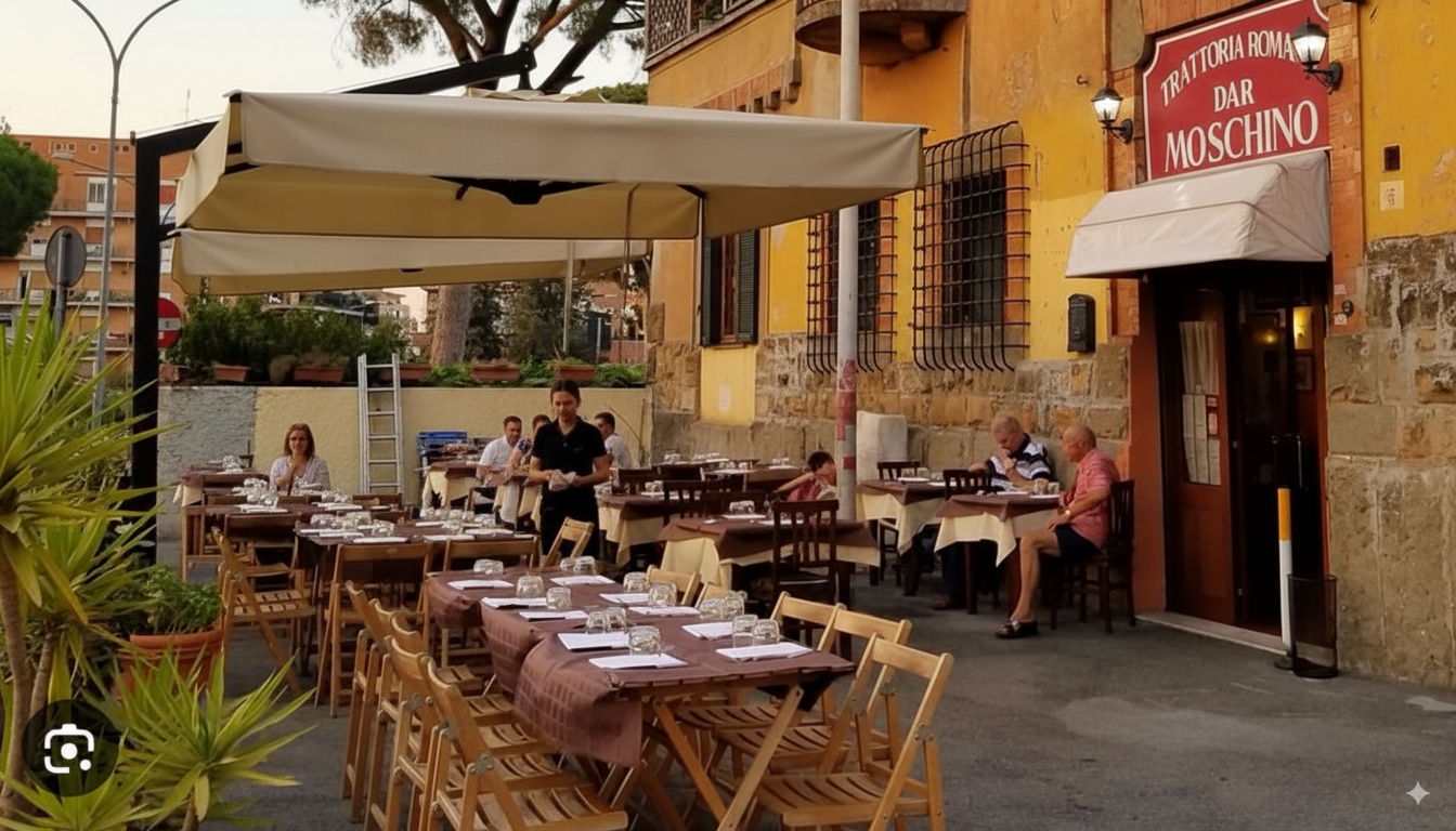 Immergiti nella vera cultura romana! Panonto e Ristoro degli Angeli sono sotto casa, mentre Ar Grottino del Traslocatore e Dar Moschino ti aspettano a pochi passi. Scopri anche il famoso Bar dei Cesaroni e gustati un aperitivo nell'atmosfera unica di Garbatella.